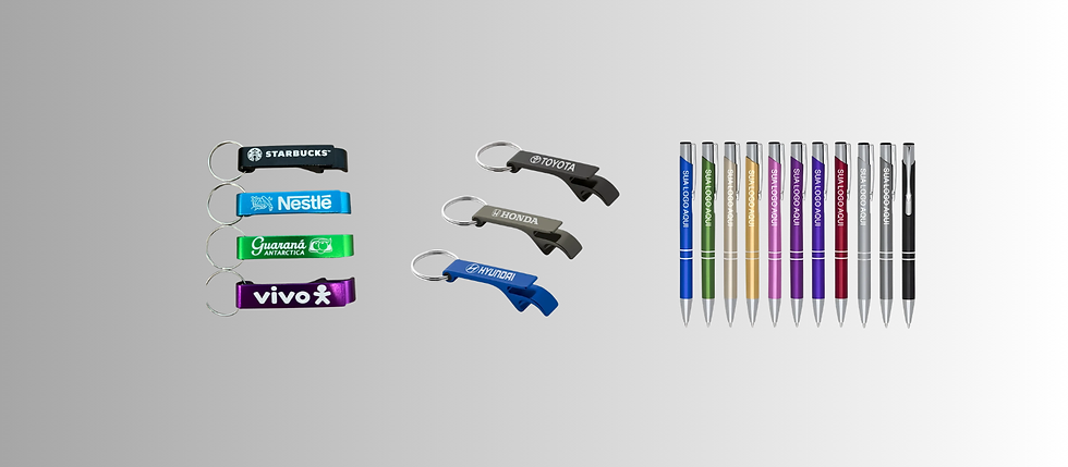 Investir em brindes como canetas de metal e chaveiros personalizados a laser pode aumentar a visibilidade da sua marca e deixar uma impressão duradoura nos seus clientes.